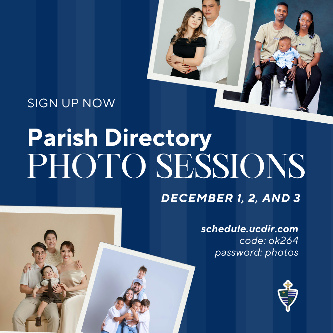 It’s time to update our Parish Directory for 2026! Professional photo sessions will be held December 1, 2, and 3.